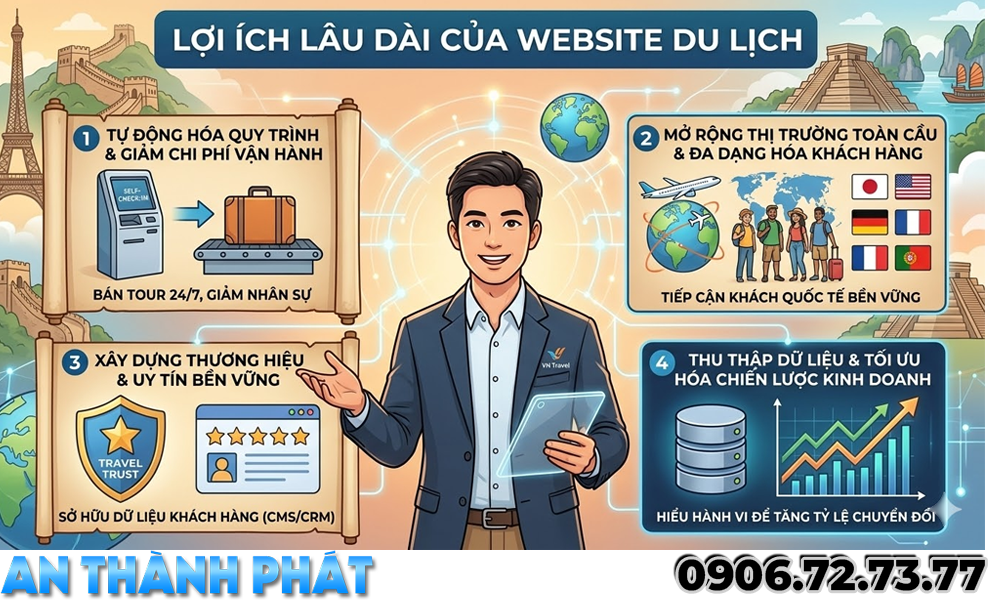 Một website du lịch được đầu tư đúng cách sẽ mang lại nhiều lợi ích lâu dài cho doanh nghiệp.